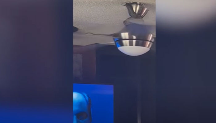 A recent video surfaces on social media showing a snake lurking on the ceiling went viral with netizens baffled