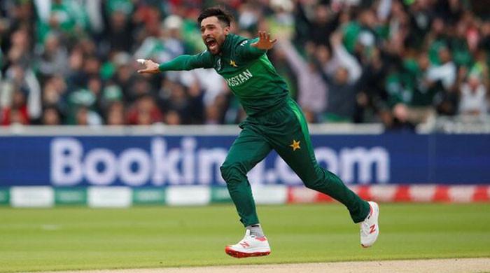 Pakistan's Mohammad Amir celebrates taking the wicket of New Zealand's Martin Guptill in Edgbaston, Birmingham of Britian on June 26, 2019. — Reuters